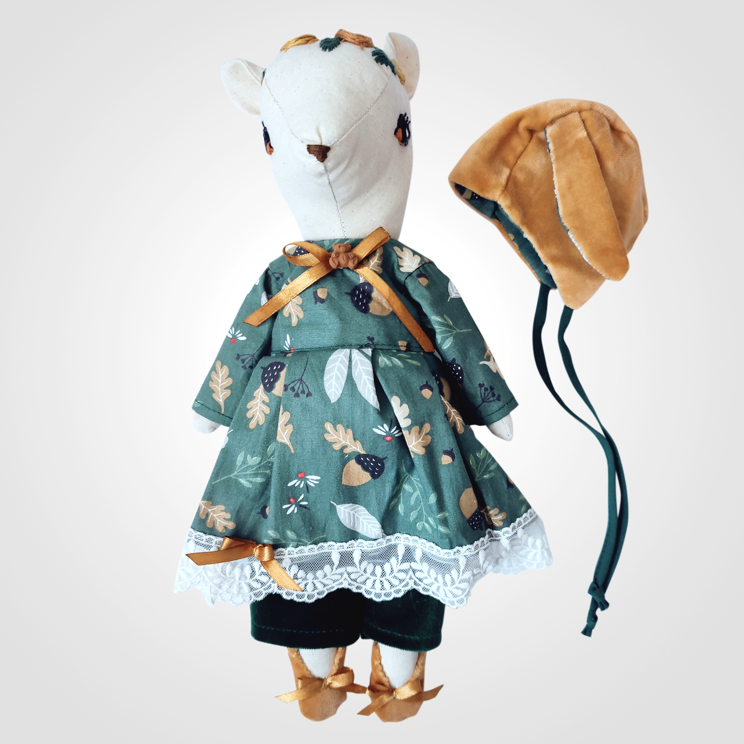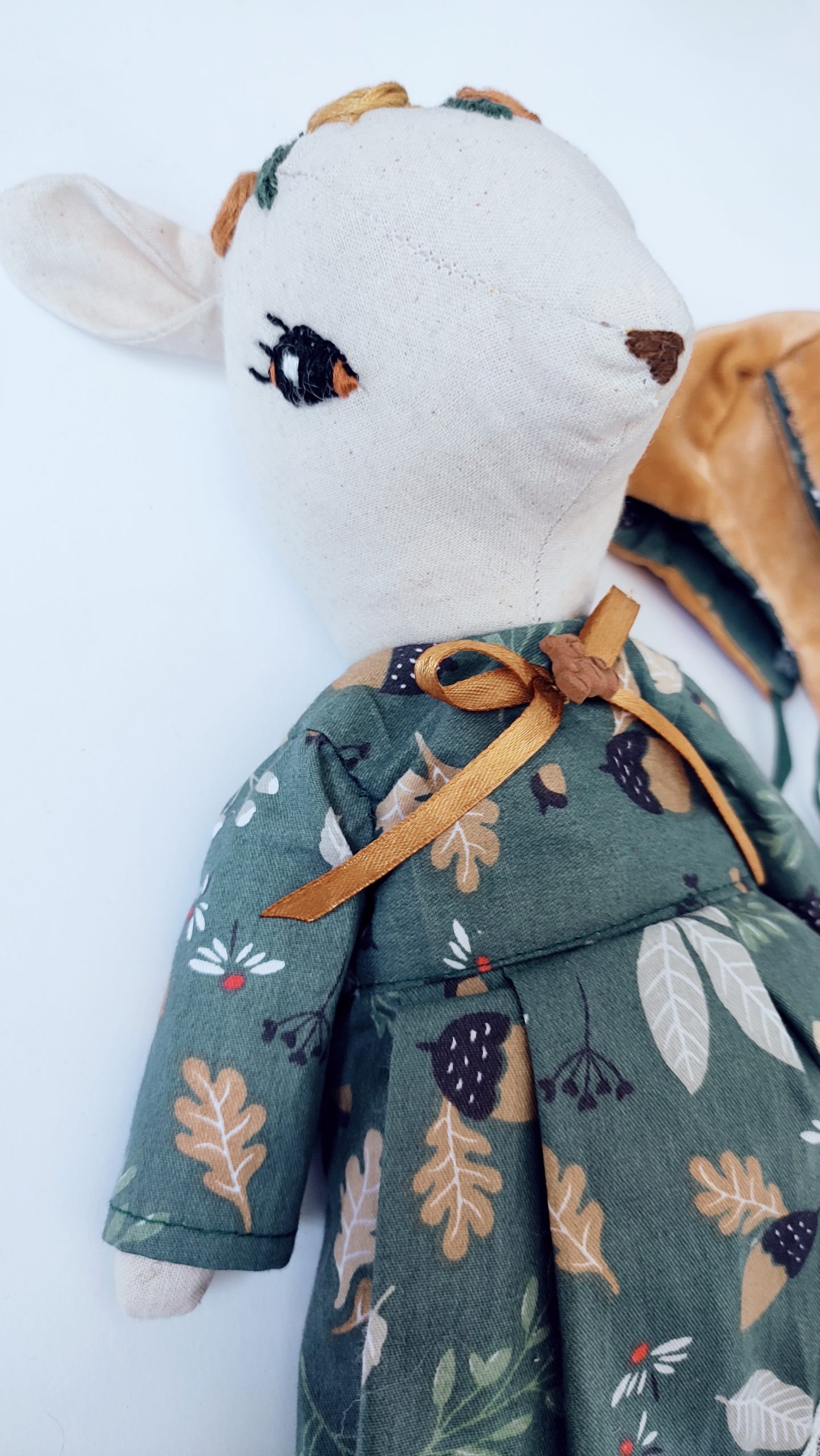 Ręcznie szyta i haftowana przytulanka. Wykonana z dbałością o każdy szczegół według własnego projektu autorki. Ilość pracy jaka została włożona w sarenkę powoduje, że można nazywać ją małym dziełem sztuki. Jednocześnie może być pięknym prezentem na urodziny lub święta i stanowić ukochaną przytulankę z dzieciństwa. Estetyka, gust, smak i właściwości użytkowe w jednym produkcie. Jest taka tylko jedna sztuka. Nie ma dwóch identycznych.